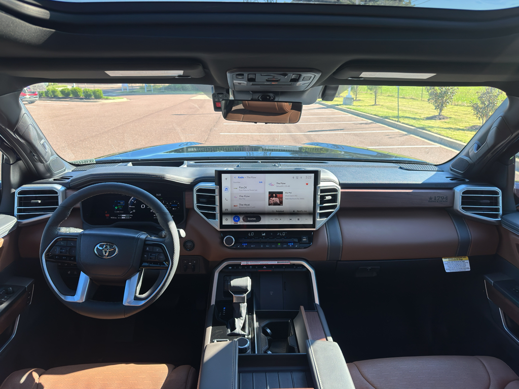 Introducing the 2025 Toyota Tundra 1794 Edition Hybrid, where luxury meets performance. This remarkable vehicle combines the power of a V6, 3.5L engine with the efficiency of a hybrid, making it a versatile choice for both adventure and daily commutes. Equipped with 4WD, it’s ready to tackle any terrain, ensuring a smooth ride in all conditions. Step inside and experience the sophistication of leather seats that provide comfort and style. The heated steering wheel is perfect for those chilly mornings, adding an extra layer of convenience to your drive. Stay connected with hands-free Bluetooth and Apple CarPlay, ensuring seamless integration with your devices for calls, messages, and music. Safety is a priority with Cross-Traffic Alert, giving you confidence on the road by detecting approaching vehicles when reversing. The Tundra 1794 Edition Hybrid is not just a vehicle; it's a statement of innovation and reliability. Whether you’re navigating city streets or exploring the great outdoors, this Tundra delivers exceptional performance and style. Visit us today to experience the perfect blend of rugged capability and refined luxury in the 2025 Toyota Tundra 1794 Edition Hybrid. Your next adventure awaits.