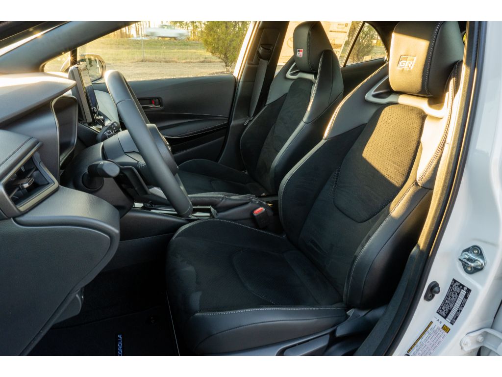This Toyota GR Corolla features a sporty, driver-focused interior with supportive bolstered seats, intuitive controls, and modern tech to keep you connected and in control. Safety systems and driver assists are integrated to enhance peace of mind on every trip. With its compact footprint and aggressive stance, the Toyota GR Corolla blends track-capable performance with usable cargo and passenger space for daily life.