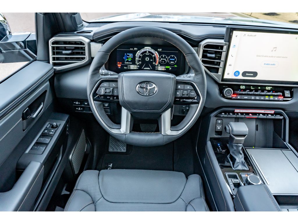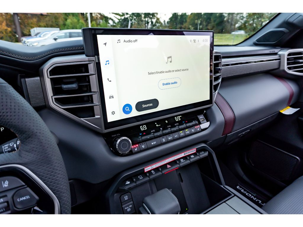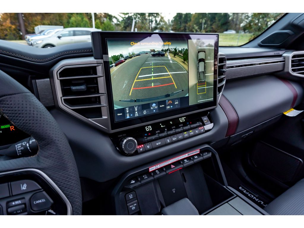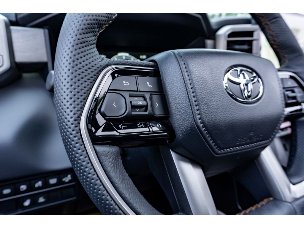 The leather seats in the vehicle are a must for buyers looking for comfort, durability, and style. This 1/2 ton pickup features a hands-free Bluetooth phone system. This model warns of approaching vehicles with Cross-Traffic Alert. It offers Apple CarPlay for seamless connectivity. The vehicle is pure luxury with a heated steering wheel. This unit comes equipped with Android Auto for seamless smartphone integration on the road. The installed navigation system will keep you on the right path. Protect this unit from unwanted accidents with a cutting edge backup camera system. This 2026 Toyota Tundra Hybrid 's blind spot monitor enhances safety. Never get into a cold vehicle again with the remote start feature on this Toyota Tundra Hybrid. This unit has four wheel drive capabilities. It has a V6, 3.5L high output engine. This 2026 Toyota Tundra Hybrid shines with an exquisite metallic silver exterior finish. Maintaining a stable interior temperature in it is easy with the climate control system.