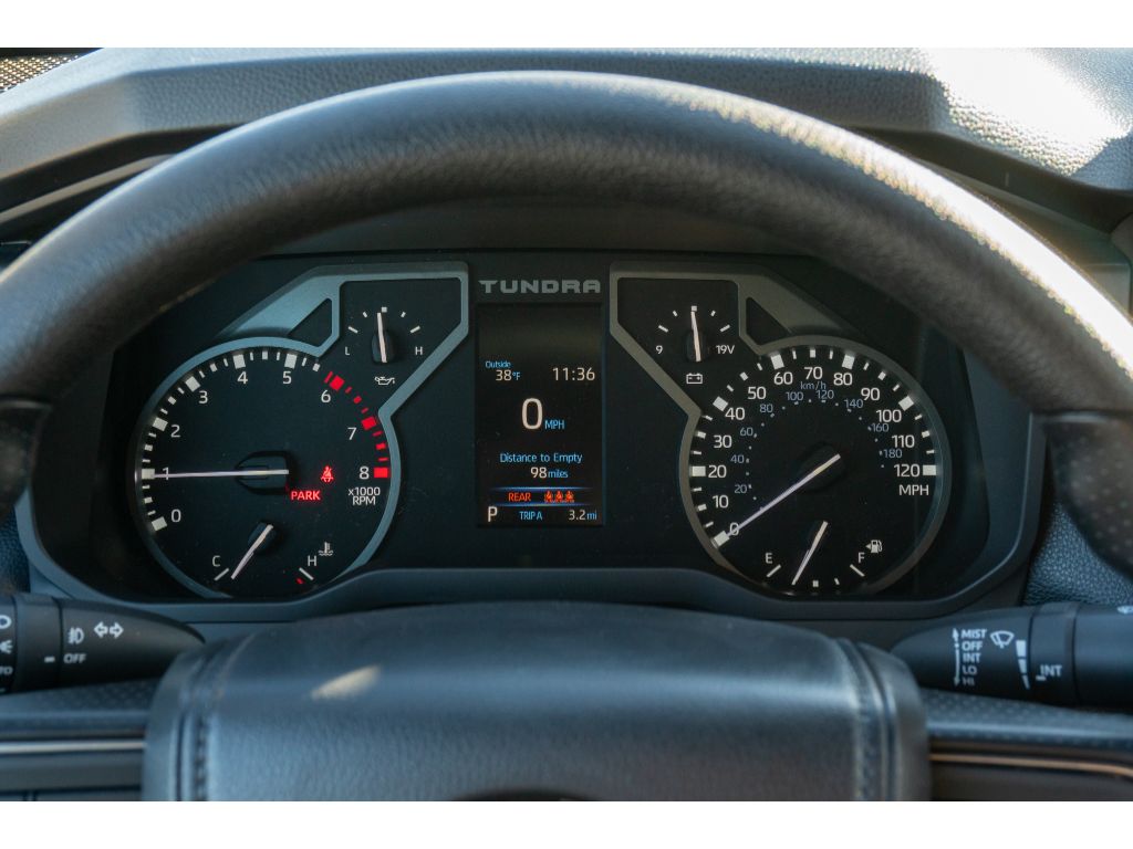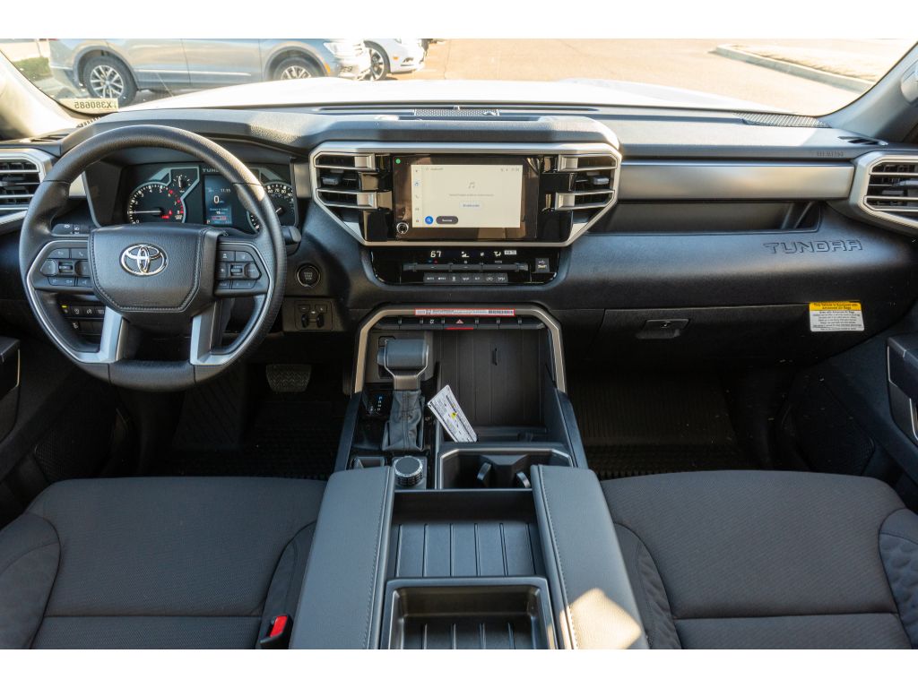 See what's behind you with the back up camera on this model. The rear parking assist technology on the Toyota Tundra will put you at ease when reversing. The system alerts you as you get closer to an obstruction. This Toyota Tundra offers Android Auto for seamless smartphone integration. This unit features a hands-free Bluetooth phone system. This model offers Automatic Climate Control for personalized comfort. This 2026 Toyota Tundra offers Apple CarPlay for seamless connectivity. This 1/2 ton pickup enhances safety with a blind spot monitor, alerting drivers to potential dangers in adjacent lanes. Start this model from inside with remote start. This 1/2 ton pickup embodies class and sophistication with its refined white exterior. When you encounter slick or muddy roads, you can engage the four wheel drive on this 2026 Toyota Tundra and drive with confidence. Set the temperature exactly where you are most comfortable in this 2026 Toyota Tundra . The fan speed and temperature will automatically adjust to maintain your preferred zone climate.