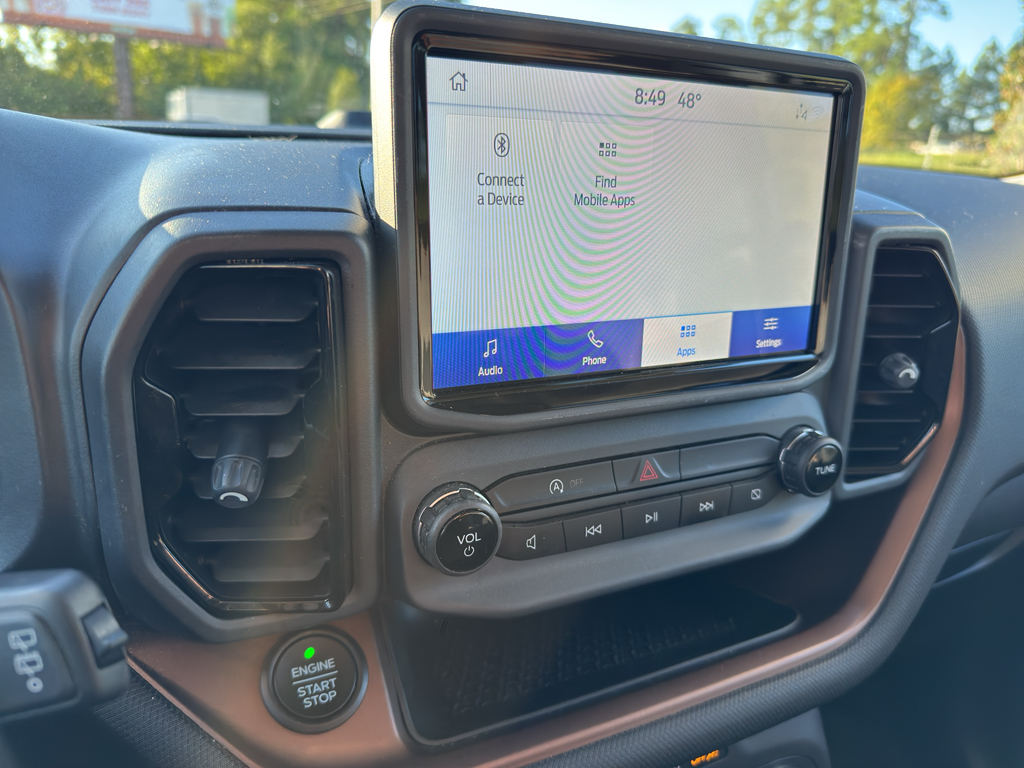 Built for convenience and connectivity, this Ford Bronco Sport includes Apple CarPlay for seamless smartphone integration, a Back-Up Camera for safer parking and reversing, and Cross-Traffic Alert to help detect approaching vehicles while backing out of spaces. The premium Leather Seats elevate cabin comfort, while Automatic Climate Control maintains the perfect interior temperature for every journey.