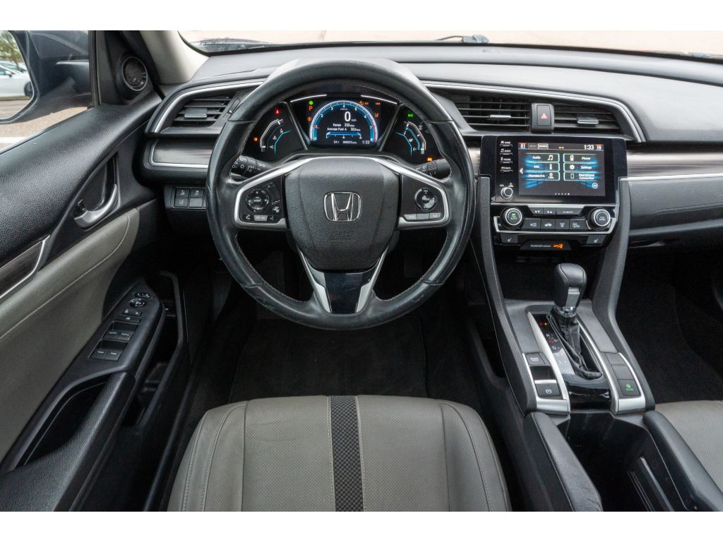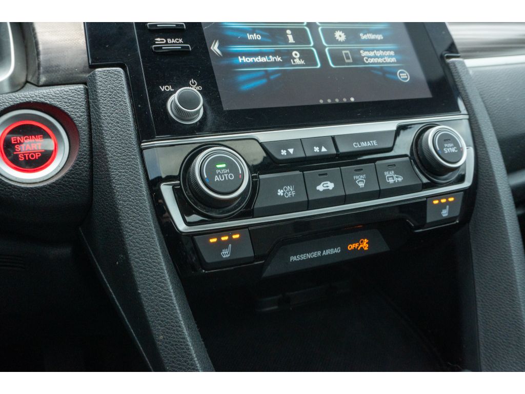 This vehicle offers Automatic Climate Control for personalized comfort. This 2021 Honda Civic offers Apple CarPlay for seamless connectivity. Protect this 2021 Honda Civic from unwanted accidents with a cutting edge backup camera system. This vehicle has auto-adjust speed for safe following. Bluetooth technology is built into this unit, keeping your hands on the steering wheel and your focus on the road. Start this unit from inside with remote start. Our dealership has already run the CARFAX report and it is clean. A clean CARFAX is a great asset for resale value in the future. The leather seats in this unit are a must for buyers looking for comfort, durability, and style. This vehicle is a certified CARFAX 1-owner. This vehicle comes equipped with Android Auto for seamless smartphone integration on the road. The vehicle is front wheel drive. Maintaining a stable interior temperature in it is easy with the climate control system.The Honda Civic has auto-adjust speed for safe following. This unit offers Android Auto for seamless smartphone integration. This unit offers Apple CarPlay for seamless connectivity. The vehicle keeps you comfortable with Auto Climate. This unit has an automatic transmission. Protect this Honda Civic from unwanted accidents with a cutting edge backup camera system. Good News! This certified CARFAX 1-owner vehicle has only had one owner before you. This model has a clean CARFAX vehicle history report. Maintaining a stable interior temperature in this Honda Civic is easy with the climate control system. Easily set your speed in this model with a state of the art cruise control system. Increase or decrease velocity with the touch of a button. The Electronic Stability Control will keep you on your intended path. The Honda Civic has a 4 Cyl, 1.5L high output engine. It has fog lights for all weather conditions. This vehicle is front wheel drive. This Honda Civic is equipped with a gasoline engine. The Honda Civic projects refinement with a racy metallic gray exterior. Bluetooth technology is built into the Honda Civic, keeping your hands on the steering wheel and your focus on the road. The leather seats in this unit are a must for buyers looking for comfort, durability, and style. Never get into a cold vehicle again with the remote start feature on this small car. Small and nimble this Honda Civic scoots through traffic. It offers great fuel mileage and ease of parking.