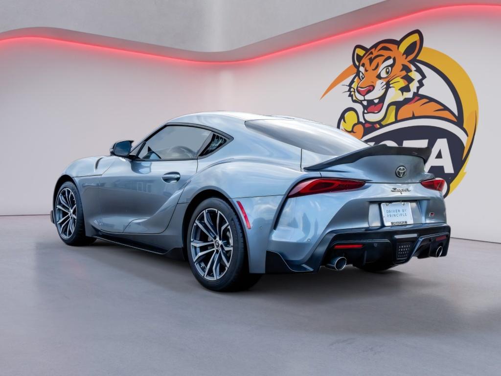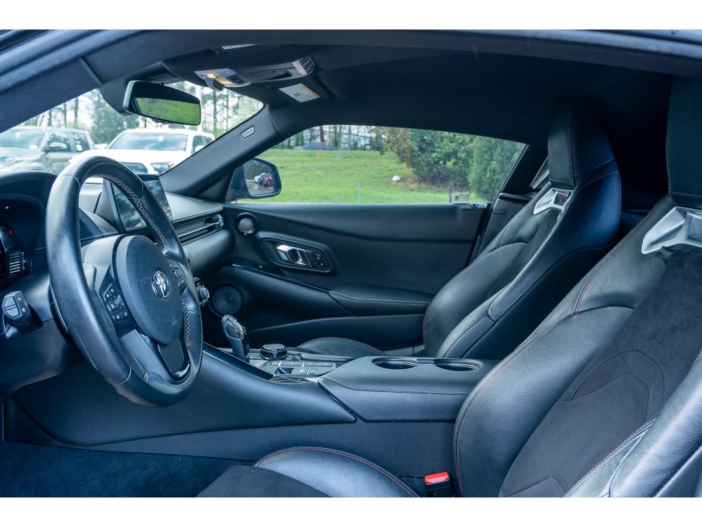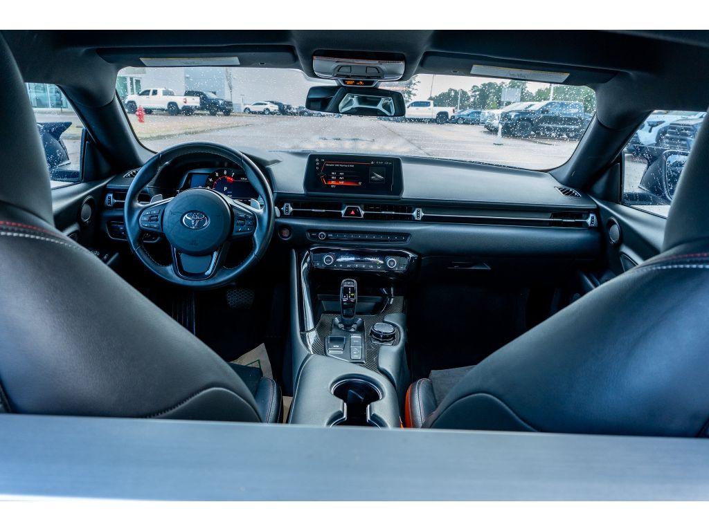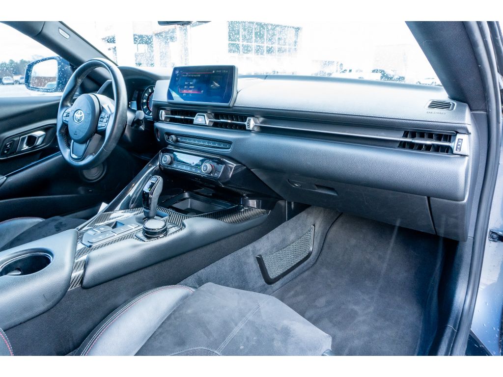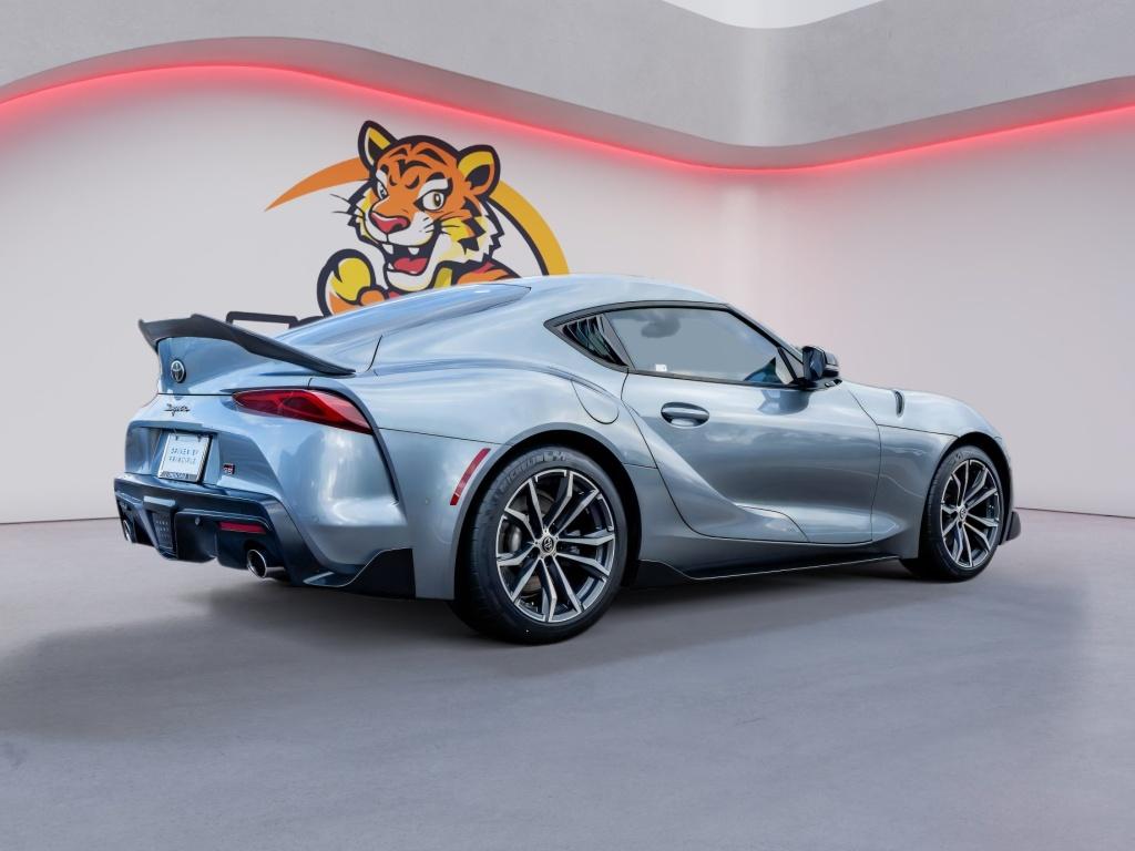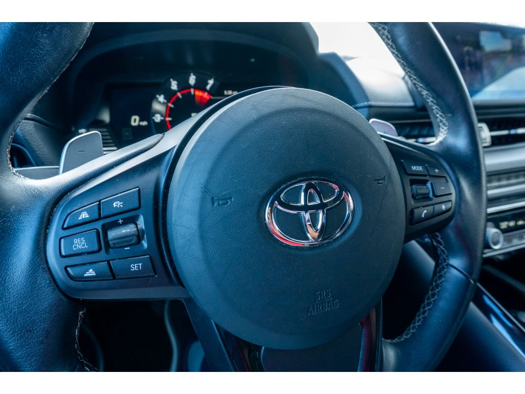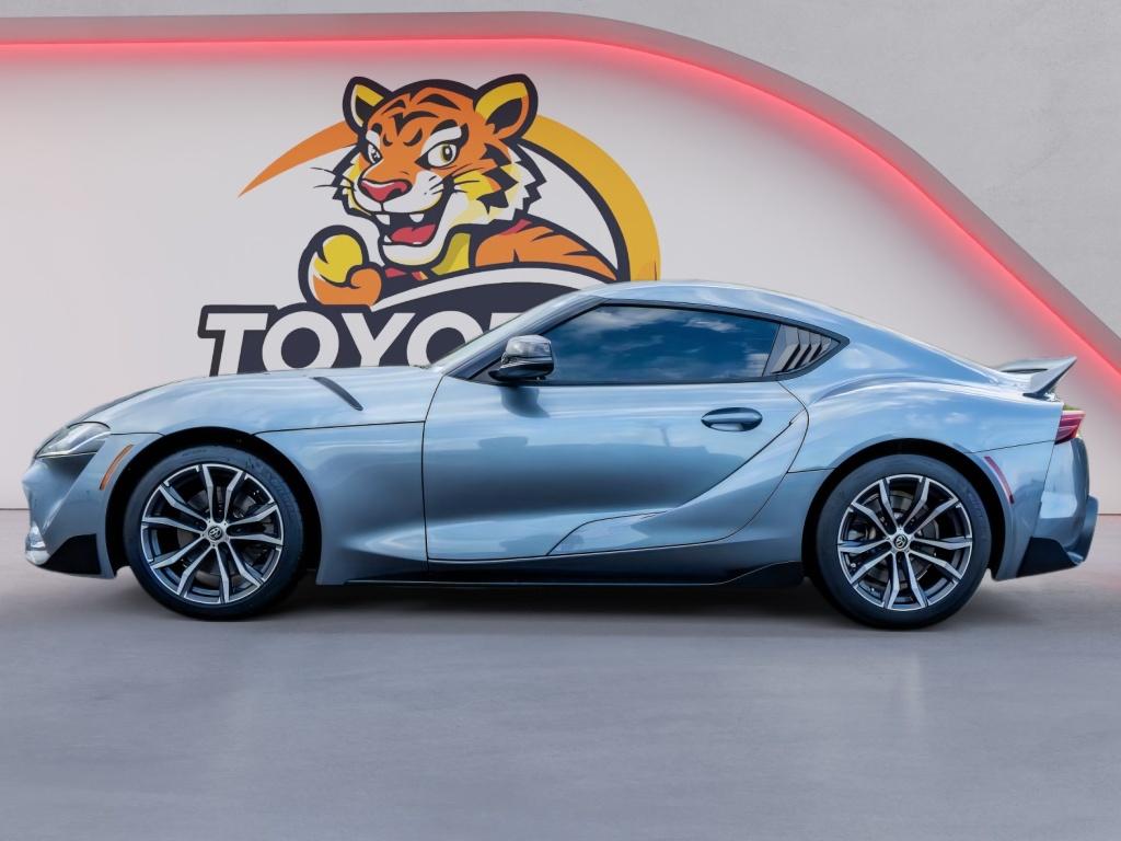 You'll never again be lost in a crowded city or a country region with the navigation system on this 2021 Toyota GR Supra . This 2021 Toyota GR Supra features a hands-free Bluetooth phone system. This 2021 Toyota GR Supra has auto-adjust speed for safe following. The leather seats in it are a must for buyers looking for comfort, durability, and style. This unit offers Automatic Climate Control for personalized comfort. Protect this vehicle from unwanted accidents with a cutting edge backup camera system. The rear parking assist technology on this Toyota GR Supra will put you at ease when reversing. The system alerts you as you get closer to an obstruction. This model's Cross-Traffic Alert: Safeguarding you from unexpected traffic when reversing. The vehicle's blind spot monitor enhances safety. This unit offers Apple CarPlay for seamless connectivity. Set the temperature exactly where you are most comfortable in this unit. The fan speed and temperature will automatically adjust to maintain your preferred zone climate.The Toyota GR Supra has automated speed control that adjusts to maintain a safe following distance, enhancing highway driving convenience. Apple CarPlay: Seamless smartphone integration for this small car - stay connected and entertained on the go! This small car keeps you comfortable with Auto Climate. The high efficiency automatic transmission shifts smoothly and allows you to relax while driving. See what's behind you with the back up camera on the vehicle. This model enhances safety with a blind spot monitor, alerting drivers to potential dangers in adjacent lanes. Maintaining a stable interior temperature in this unit is easy with the climate control system. The vehicle warns of approaching vehicles with Cross-Traffic Alert. Easily set your speed in this Toyota GR Supra with a state of the art cruise control system. Increase or decrease velocity with the touch of a button. Electronic Stability Control is one of many advanced safety features on the vehicle. The vehicle has a 4 Cyl, 2.0L high output engine. This vehicle has fog lights for all weather conditions. The vehicle is equipped with a gasoline engine. It projects refinement with a racy metallic gray exterior. This small car features a hands-free Bluetooth phone system. The leather seats in this vehicle are a must for buyers looking for comfort, durability, and style. With the adjustable lumbar support in this model your back will love you. You'll never again be lost in a crowded city or a country region with the navigation system on the Toyota GR Supra. The rear parking assist technology on this small car will put you at ease when reversing. The system alerts you as you get closer to an obstruction. Enjoy the incredible handling with the rear wheel drive on the Toyota GR Supra. Small and nimble the vehicle scoots through traffic. It offers great fuel mileage and ease of parking.