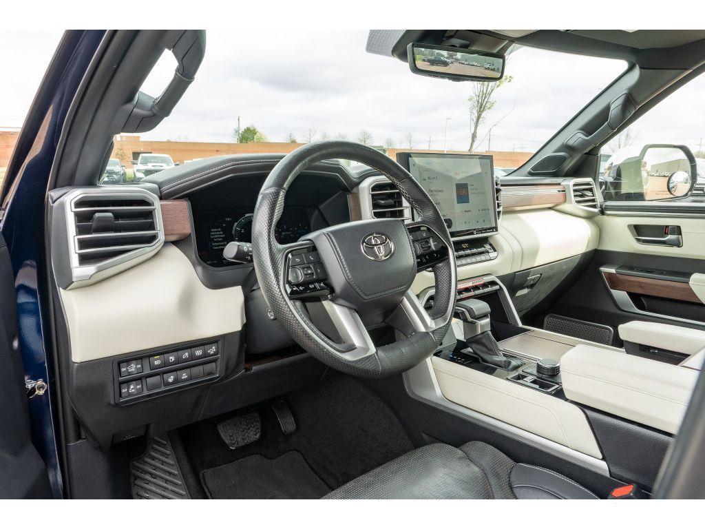 This model's Cross-Traffic Alert: Safeguarding you from unexpected traffic when reversing. This unit is pure luxury with a heated steering wheel. This vehicle offers Android Auto for seamless smartphone integration. This model's blind spot monitor enhances safety. You'll never again be lost in a crowded city or a country region with the navigation system on the Toyota Tundra Hybrid. Apple CarPlay: Seamless smartphone integration for this unit - stay connected and entertained on the go! Bluetooth technology is built into the Toyota Tundra Hybrid, keeping your hands on the steering wheel and your focus on the road. Protect this 1/2 ton pickup from unwanted accidents with a cutting edge backup camera system. Start this model from inside with remote start. The leather seats in this unit are a must for buyers looking for comfort, durability, and style. The Toyota Tundra Hybrid has a V6, 3.5L high output engine. Impresses the most discerning driver with the deep polished blue exterior on this 1/2 ton pickup.Half ton trucks are the most functional trucks for all purposes. When you encounter slick or muddy roads, you can engage the four wheel drive on this 1/2 ton pickup and drive with confidence. This 2022 Toyota Tundra Hybrid offers Android Auto for seamless smartphone integration. The vehicle offers Apple CarPlay for seamless connectivity. The high efficiency automatic transmission shifts smoothly and allows you to relax while driving. Protect this unit from unwanted accidents with a cutting edge backup camera system. The Toyota Tundra Hybrid's blind spot monitor enhances safety. Impresses the most discerning driver with the deep polished blue exterior on this 2022 Toyota Tundra Hybrid . Maintaining a stable interior temperature in the vehicle is easy with the climate control system. This 1/2 ton pickup warns of approaching vehicles with Cross-Traffic Alert. This 2022 Toyota Tundra Hybrid features cruise control for long trips. This Toyota Tundra Hybrid has a V6, 3.5L high output engine. Bluetooth technology is built into this 1/2 ton pickup, keeping your hands on the steering wheel and your focus on the road. This model is pure luxury with a heated steering wheel. The leather seats in this Toyota Tundra Hybrid are a must for buyers looking for comfort, durability, and style. Help alleviate lower back pain with the driver seat lumbar support in this model. The installed navigation system will keep you on the right path. Never get into a cold vehicle again with the remote start feature on this 2022 Toyota Tundra Hybrid .
