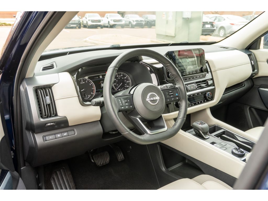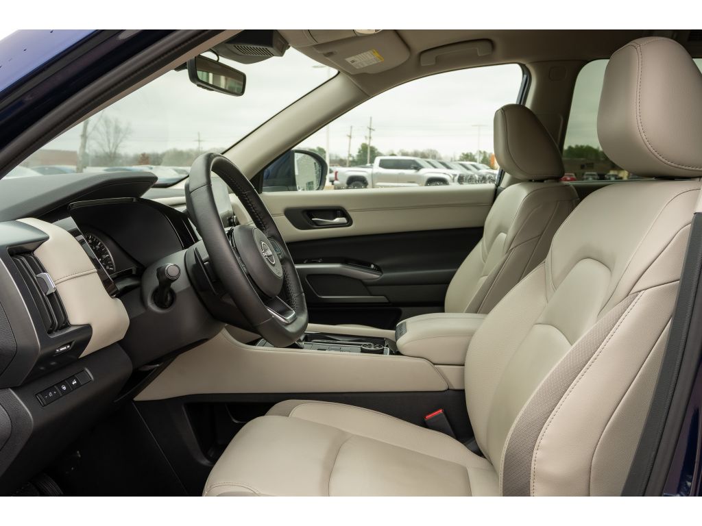 with XM/Sirus Satellite Radio you are no longer restricted by poor quality local radio stations while driving this Nissan Pathfinder. Anywhere on the planet, you will have hundreds of digital stations to choose from. See what's behind you with the back up camera on this mid-size suv. Our dealership has already run the CARFAX report and it is clean. A clean CARFAX is a great asset for resale value in the future. Good News! This certified CARFAX 1-owner vehicle has only had one owner before you. The leather seats in the vehicle are a must for buyers looking for comfort, durability, and style. Bluetooth technology is built into the Nissan Pathfinder, keeping your hands on the steering wheel and your focus on the road. Keep your hands warm all winter with a heated steering wheel in it . Never get into a cold vehicle again with the remote start feature on the vehicle.Conquer any rainy, snowy, or icy road conditions this winter with the all wheel drive system on this mid-size suv. This model offers Android Auto for seamless smartphone integration. Apple CarPlay: Seamless smartphone integration for the Nissan Pathfinder - stay connected and entertained on the go! This Nissan Pathfinder has an automatic transmission. See what's behind you with the back up camera on the Nissan Pathfinder. This 2024 Nissan Pathfinder shines with an exquisite blue finish. Good News! This certified CARFAX 1-owner vehicle has only had one owner before you. This 2024 Nissan Pathfinder has a clean CARFAX vehicle history report. Maintaining a stable interior temperature in this model is easy with the climate control system. Easily set your speed in this model with a state of the art cruise control system. Increase or decrease velocity with the touch of a button. This Nissan Pathfinder has a V6, 3.5L high output engine. The Nissan Pathfinder is equipped with a gasoline engine. This Nissan Pathfinder features a hands-free Bluetooth phone system. Keep your hands warm all winter with a heated steering wheel in the Nissan Pathfinder . The leather seats in it are a must for buyers looking for comfort, durability, and style. Help alleviate lower back pain with the driver seat lumbar support in the vehicle. This mid-sized SUV is perfect for your next adventure. The installed navigation system will keep you on the right path. Enjoy the convenience of the power liftgate on this model. Start this vehicle from inside with remote start. with XM/Sirus Satellite Radio you are no longer restricted by poor quality local radio stations while driving this 2024 Nissan Pathfinder . Anywhere on the planet, you will have hundreds of digital stations to choose from.