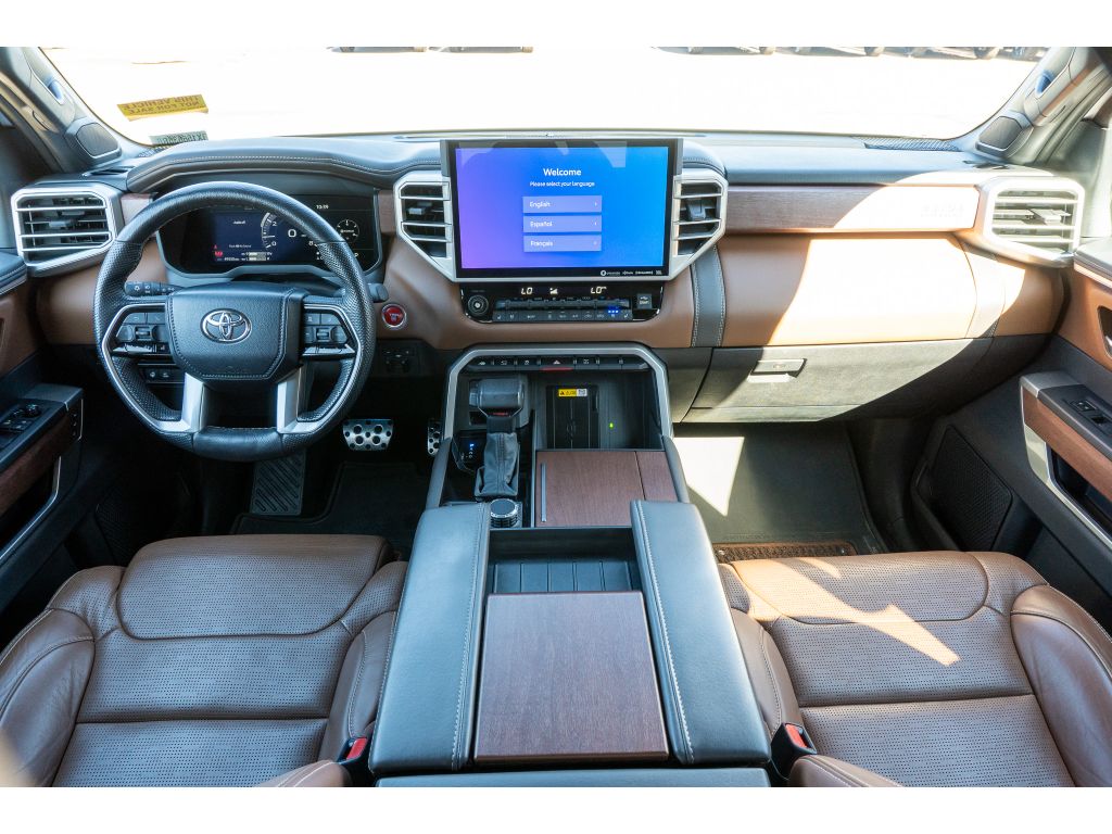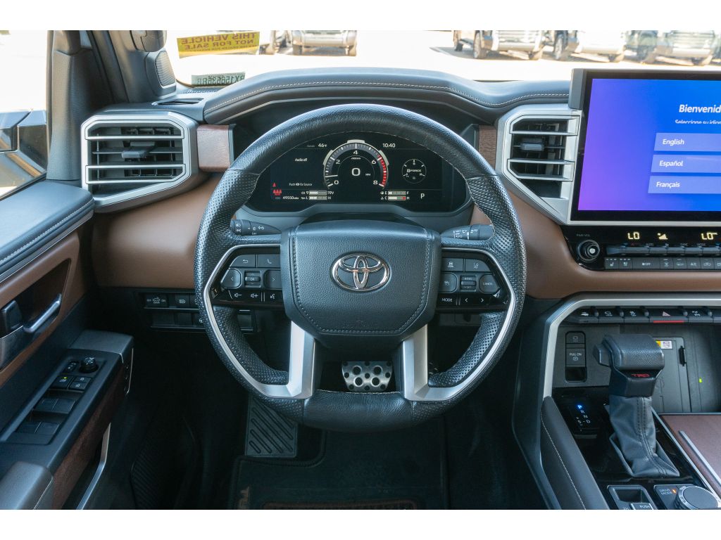 The leather seats in this model are a must for buyers looking for comfort, durability, and style. The Toyota Tundra's Cross-Traffic Alert: Safeguarding you from unexpected traffic when reversing. This model is pure luxury with a heated steering wheel. Our dealership has already run the CARFAX report and it is clean. A clean CARFAX is a great asset for resale value in the future. An off-road package is installed on the Toyota Tundra so you are ready for your four-wheeling best. The installed navigation system will keep you on the right path. Start the vehicle from inside with remote start. Protect the vehicle from unwanted accidents with a cutting edge backup camera system. This 2024 Toyota Tundra offers Apple CarPlay for seamless connectivity. The vehicle enhances safety with a blind spot monitor, alerting drivers to potential dangers in adjacent lanes. It features a hands-free Bluetooth phone system. This model offers Android Auto for seamless smartphone integration.Big enough to tow or haul, this unit has the space, power and durability for anyone. When you encounter slick or muddy roads, you can engage the four wheel drive on this vehicle and drive with confidence. This 2024 Toyota Tundra is accented with premium quality alloy wheels. It comes equipped with Android Auto for seamless smartphone integration on the road. Apple CarPlay: Seamless smartphone integration for this Toyota Tundra - stay connected and entertained on the go! The high efficiency automatic transmission shifts smoothly and allows you to relax while driving. See what's behind you with the back up camera on this 2024 Toyota Tundra . The vehicle enhances safety with a blind spot monitor, alerting drivers to potential dangers in adjacent lanes. Good News! This certified CARFAX 1-owner vehicle has only had one owner before you. Our dealership has already run the CARFAX report and it is clean. A clean CARFAX is a great asset for resale value in the future. Maintaining a stable interior temperature in this unit is easy with the climate control system. This model warns of approaching vehicles with Cross-Traffic Alert. This 1/2 ton pickup features cruise control for long trips. This 2024 Toyota Tundra has a V6, 3.5L (3445 cc) high output engine. Enjoy the tried and true gasoline engine in this 1/2 ton pickup. The vehicle features a hands-free Bluetooth phone system. Keep your hands warm all winter with a heated steering wheel in it . The leather seats in this unit are a must for buyers looking for comfort, durability, and style. Help alleviate lower back pain with the driver seat lumbar support in this Toyota Tundra. You'll never again be lost in a crowded city or a country region with the navigation system on this Toyota Tundra. An off-road package is installed on this Toyota Tundra so you are ready for your four-wheeling best. Never get into a cold vehicle again with the remote start feature on this vehicle. This unit embodies class and sophistication with its refined white exterior.