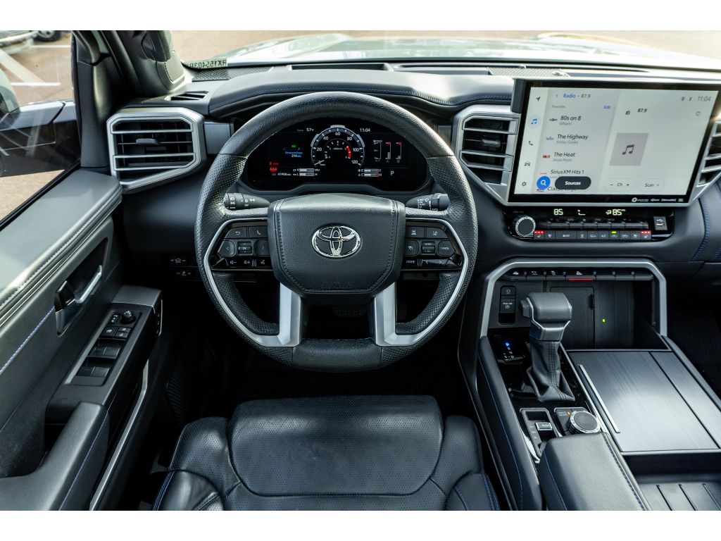 2024 Toyota Tundra Platinum — 4WD, V6 3.5L, 41,892 miles. This premium pickup combines capability, comfort, and technology, now available in Hernando, MS, at the best price. CARFAX 1-Owner history assures thoughtful ownership and maintained service records, giving you additional confidence in your purchase. Under the hood, the robust 3.5L V6 gasoline engine delivers confident performance and towing-ready readiness, while four-wheel drive provides traction and control across varied terrain and weather. Inside, the Platinum trim brings upscale appointments and thoughtful convenience: an advanced navigation system keeps you on course, a back-up camera enhances safety and parking precision, and Cross-Traffic Alert adds a layer of awareness when reversing in crowded lots. Comfort features include a heated steering wheel for added warmth during cooler drives, premium seating, and a well-appointed cabin designed for long-haul comfort. Technology and safety features are integrated to support both driver confidence and passenger convenience. This Toyota Tundra represents a smart value for buyers seeking a near-new, well-equipped truck without the new-vehicle price. Located in Hernando, MS, and competitively priced, this Toyota Tundra Platinum is ready for immediate test drive and ownership. Contact us for availability, financing options, and to schedule your inspection today.