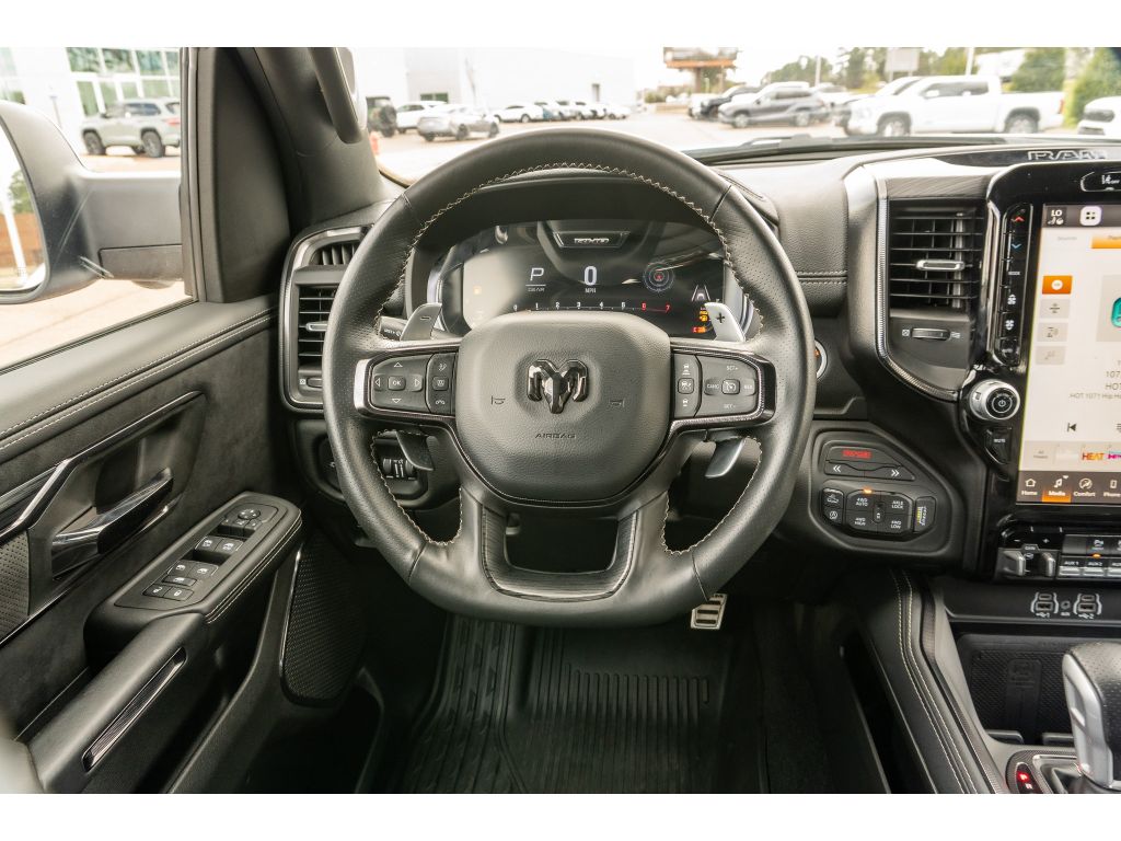 Apple CarPlay: Seamless smartphone integration for this model - stay connected and entertained on the go! This model has auto-adjust speed for safe following. This 2025 Ram 1500 features a hands-free Bluetooth phone system. The installed navigation system will keep you on the right path. Our dealership has already run the CARFAX report and it is clean. A clean CARFAX is a great asset for resale value in the future. The vehicle comes equipped with Android Auto for seamless smartphone integration on the road. An off-road package is equipped on this unit. The vehicle is pure luxury with a heated steering wheel. Protect this model from unwanted accidents with a cutting edge backup camera system. The leather seats in this Ram 1500 are a must for buyers looking for comfort, durability, and style. This Ram 1500's Lane Departure Warning helps keep you in your lane. Start this 1/2 ton pickup from inside with remote start.