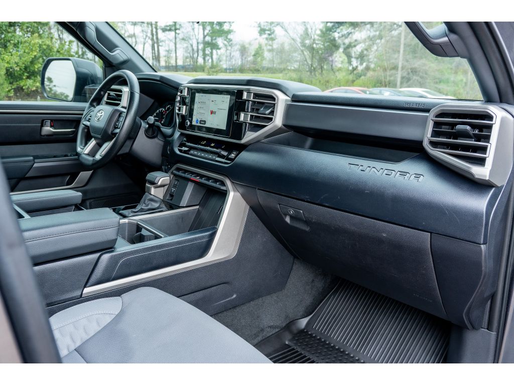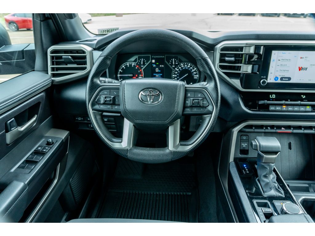 Never get into a cold vehicle again with the remote start feature on this vehicle. This vehicle is a certified CARFAX 1-owner. This Toyota Tundra comes equipped with Android Auto for seamless smartphone integration on the road. See what's behind you with the back up camera on this 2025 Toyota Tundra . The vehicle keeps you comfortable with Auto Climate. The vehicle has a clean CARFAX vehicle history report. Apple CarPlay: Seamless smartphone integration for it - stay connected and entertained on the go! Bluetooth technology is built into the Toyota Tundra, keeping your hands on the steering wheel and your focus on the road. Maintaining a stable interior temperature in the Toyota Tundra is easy with the climate control system. This Toyota Tundra projects refinement with a racy metallic gray exterior. This 2025 Toyota Tundra has a V6, 3.5L (3445 cc) high output engine. Greater towing safety becomes standard with the installed trailer brake.Big enough to tow or haul, this Toyota Tundra has the space, power and durability for anyone. When you encounter slick or muddy roads, you can engage the four wheel drive on this unit and drive with confidence. This 2025 Toyota Tundra offers Android Auto for seamless smartphone integration. It offers Apple CarPlay for seamless connectivity. This unit offers Automatic Climate Control for personalized comfort. This 1/2 ton pickup has an automatic transmission. See what's behind you with the back up camera on this 2025 Toyota Tundra . Good News! This certified CARFAX 1-owner vehicle has only had one owner before you. Our dealership has already run the CARFAX report and it is clean. A clean CARFAX is a great asset for resale value in the future. Maintaining a stable interior temperature in the vehicle is easy with the climate control system. It features cruise control for long trips. Electronic Stability Control is one of many advanced safety features on this model. It has a V6, 3.5L (3445 cc) high output engine. The fog lights cut through the weather so you can see what's ahead. This Toyota Tundra is equipped with a gasoline engine. The Toyota Tundra projects refinement with a racy metallic gray exterior. It features a hands-free Bluetooth phone system. With the adjustable lumbar support in this vehicle your back will love you. Never get into a cold vehicle again with the remote start feature on this 1/2 ton pickup. Greater towing safety becomes standard with the installed trailer brake.
